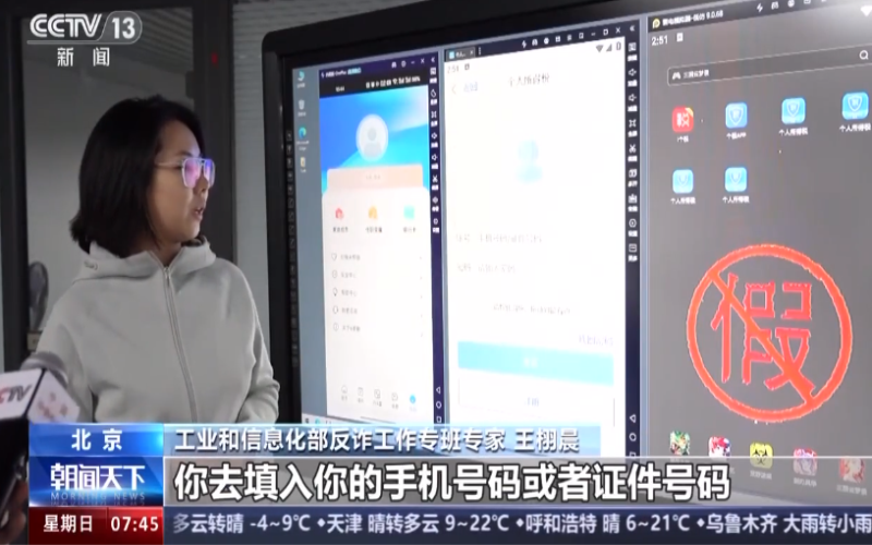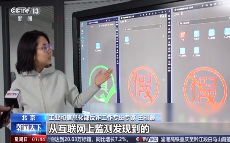 工业和信息化部反诈事情专班专家 蔡志禹:反诈专班已对涉诈App开展一连性监测发明事情,,,,关于监测发明到的涉诈App,,,,专班会举行行业共享,,,,部别离机终端会对装置此类App的用户举行预警提醒。。。。。。我们公共效劳平台也即将上线,,,,若是宽大群众发明了类似的仿冒、涉诈App线索,,,,欢迎各人通过平台实时举行举报。。。。。。