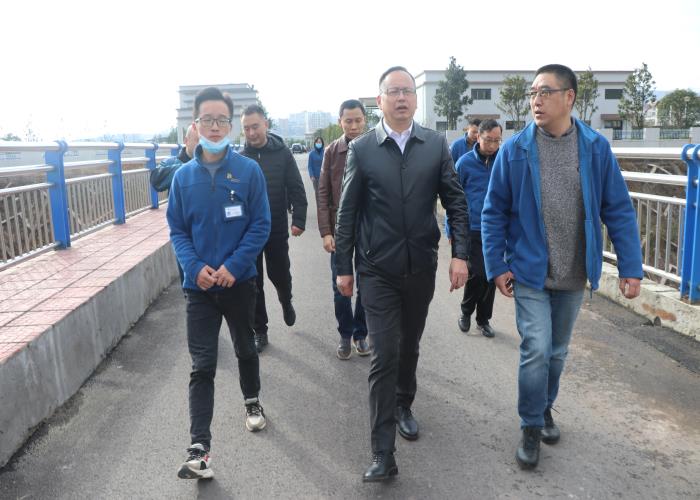 11月18日下昼,, ,,,董事长卢辉、总司理熊戈亮等向导一行5人深入我司周家坝污水厂调研指导。。。。。。