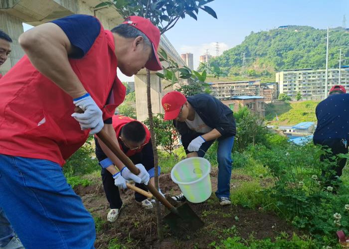 为深入贯彻习近一生态文明新头脑、新理念,,,,切实助力我市“四城同创”一连推进。。。。4月26日上午,,,,惠泉污水会同供水生产部一道共计60余人,,,,组成植树自愿者效劳队深入北外吴家沟开展义务植树运动。。。。