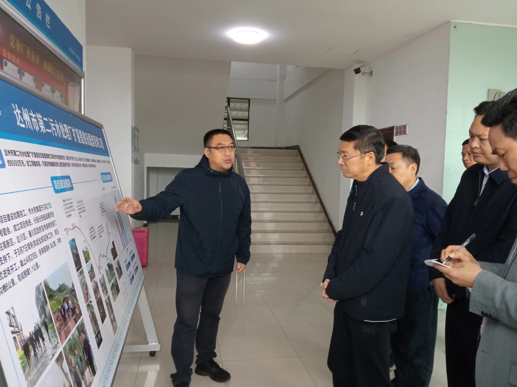 调研中,,,,,熊戈亮就第二污水处置惩罚厂扩量提效及配套管网工程进度举行了详细介绍,,,,,就管网刷新和溢流情形举行了简要汇报。。。。。。同时,,,,,熊戈亮就我司第一、二污水处置惩罚厂设计标准、运行情形,,,,,第三污水处置惩罚厂妄想及建设情形举行了汇报。。。。。。