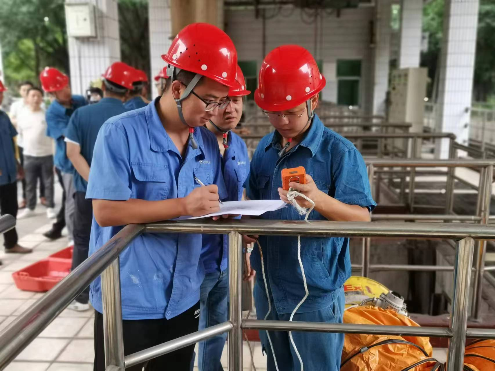 在演练现场,, ,,,,惠泉公司支部书记王辰强调了有限空间作业的危险性,, ,,,,要坚持落实事前审批流程、事中羁系流程、制订完善应急预案,, ,,,,抓好有限空间作业各个环节。。。。。随后,, ,,,,有限空间作业演练分成3个小组有序举行。。。。。装备维修职员作为有限空间作业的主要实力,, ,,,,通过演练进一步熟悉了有限空间作业操作规范流程,, ,,,,提升了应急处置惩罚能力。。。。。